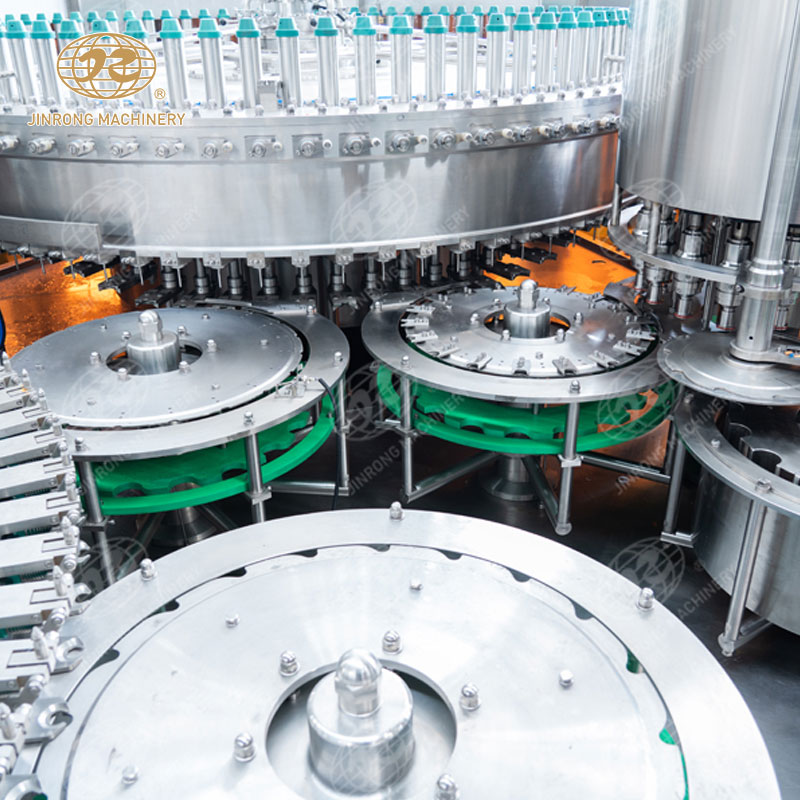 3. 灌裝:在接下來的工作站,經過定量灌裝設備,將碳酸飲料按照預設的容量精確地灌裝入瓶子中。灌裝設備通常采用重力式下料或者壓力式下料,保證了灌裝的準確性和穩(wěn)定性。