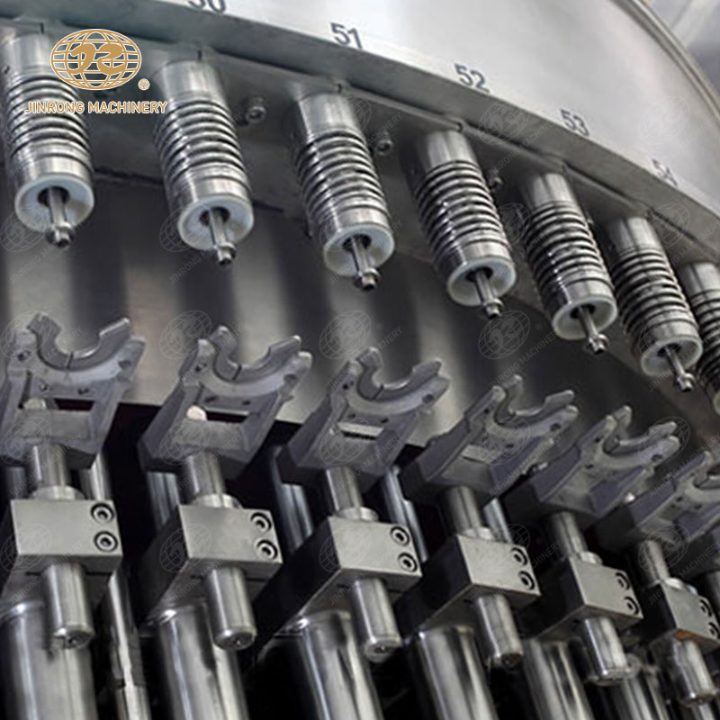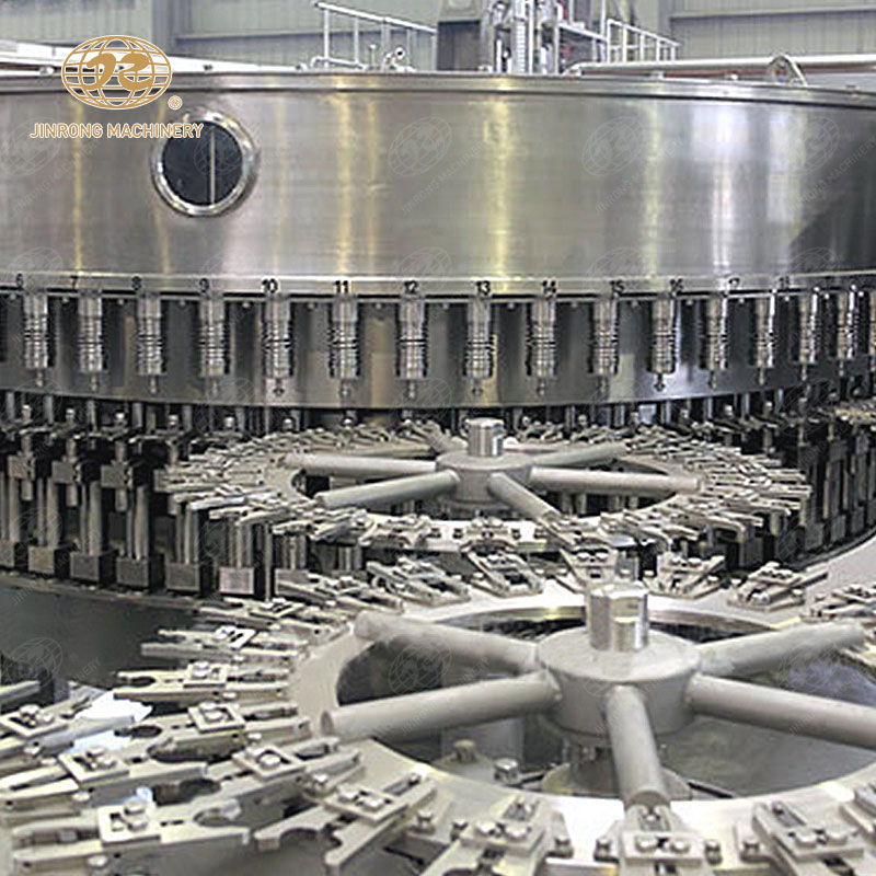 2、采用氣力輸送與進(jìn)瓶滾輪直聯(lián)技術(shù),取消進(jìn)瓶螺桿及輸送鏈條,方便更換其他規(guī)格瓶子。瓶子通過風(fēng)力輸送機(jī)進(jìn)入灌裝機(jī),然后由進(jìn)瓶鋼輪輸送到洗瓶機(jī)。